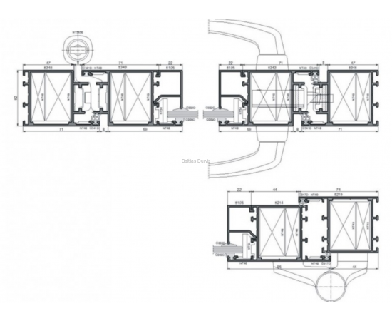 Alumīnija profilu sistēma bez termoizolācijas, tiek paredzēta iekšējām izbūvēm: vējtveriem, kases nodaļām, skatlogiem un starpsienām. Šī sistēma tiek izmantota arī bīdāmo un dūmu necaurlaidīgo durvju izgatavošanai (ar manuālo un automātisko vadību). Ponzio PT50 ļauj izmantot iekšējas stikla paketes, alumīnija paneļus, mēbeļu plāksnes, ģipškartona un polikarbonāta plāksnes, „sandwich” tipa paneļus ar platumu 1-40 mm. Profilu iebūves dziļums – 52-60 mm.