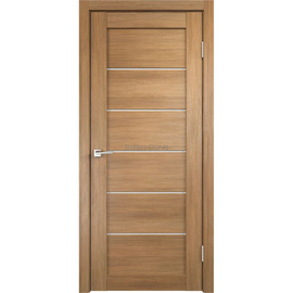 Iekšdurvis LELIA Kapučīno ar siltu koka toņa apdari un horizontāliem stikla elementiem gaismas caurlaidībai un dizainam.