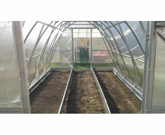 Siltumnīcas karkass veidots no cinkota metāla profila 60X40 katrs loks spēj izturēt līdz 360 kg lielu slodzi. Rāmja augstums ir ideāli piemērots garo augu audzēšanai.