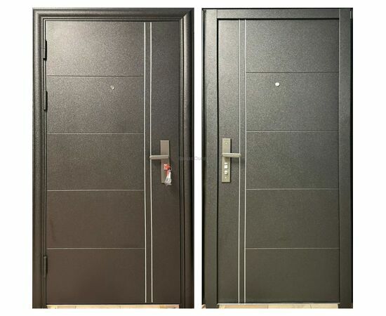 | Размеры: 860х2050 мм, 960х2050 мм Толщина дверного полотна: 70 мм Толщина стального листа дверного полотна: 0.7 мм Толщина стального листа дверной коробки: 1.2 мм Наполнитель: Каменная вата Уплотнение: 2 контура резинового уплотнителя Глазок: Хромированный Петли: 3 шт, наружные, открытие 180 градусов Основной замок и боковой замок: 5 точек запирания Покрытие поверхности дверного полотна: Нейтральная к окружающей среде солнцезащитная краска |