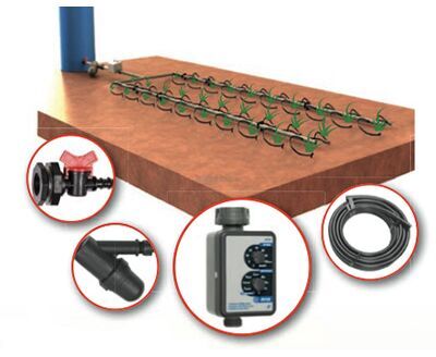 Laistīšanas sistēmas VODOMERKA pamata komplekts paredzēts divām dobēm, katra 4 metrus gara.
