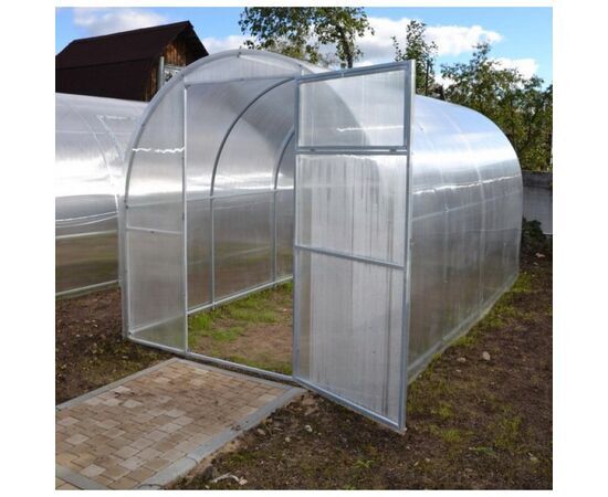 Арочная теплица из поликарбоната, изготовленная из оцинкованной металлической трубы квадратного сечения (толщина 0,8 мм и размер 2х2 см), прочна и идеально подходит для климатических условий Прибалтики. Длинa теплицы 4 метра, в зависимости от пожеланий клиента. Поликарбонат гарантирует долговечность теплицы, потому что он очень устойчив к ударам.Теплица имеет две двери (шириной 0.9 m) и 2 вентиляционных окна, на обоих концах теплицы. Установить теплицу можно как на грунт, так и на фундамент.